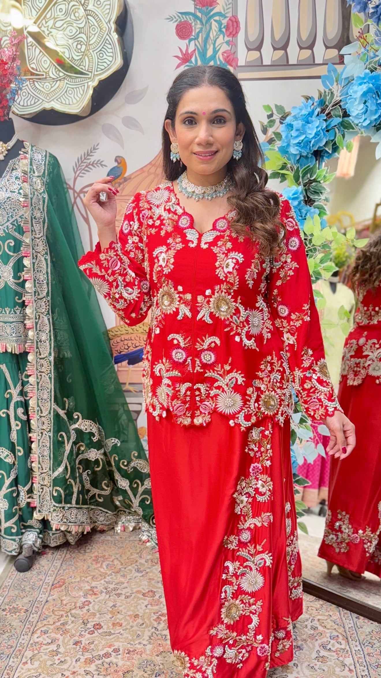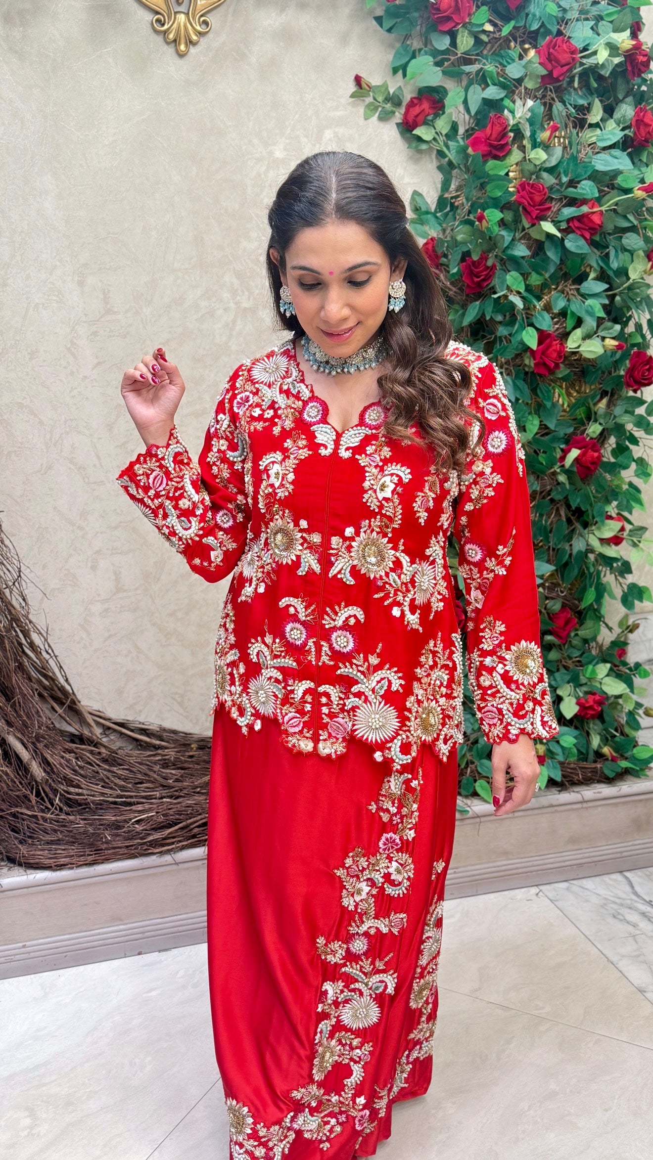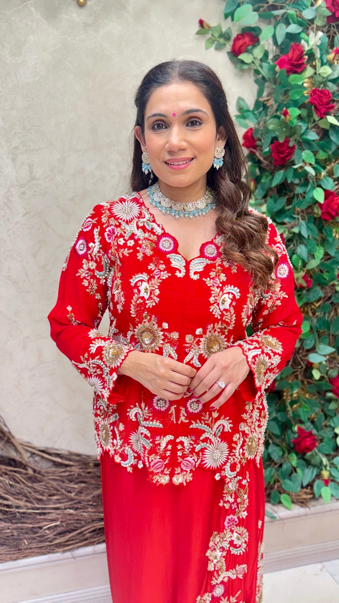 Ordered this for my friends wedding celebrations in London. The hand embroidery is stunning - you can tell it's not machine work. The satin dhoti drapes beautifully and the fabric quality is excellent. I'm 5'4" and the proportions worked perfectly. Great customer service too - they answered all my sizing questions on WhatsApp before I ordered.