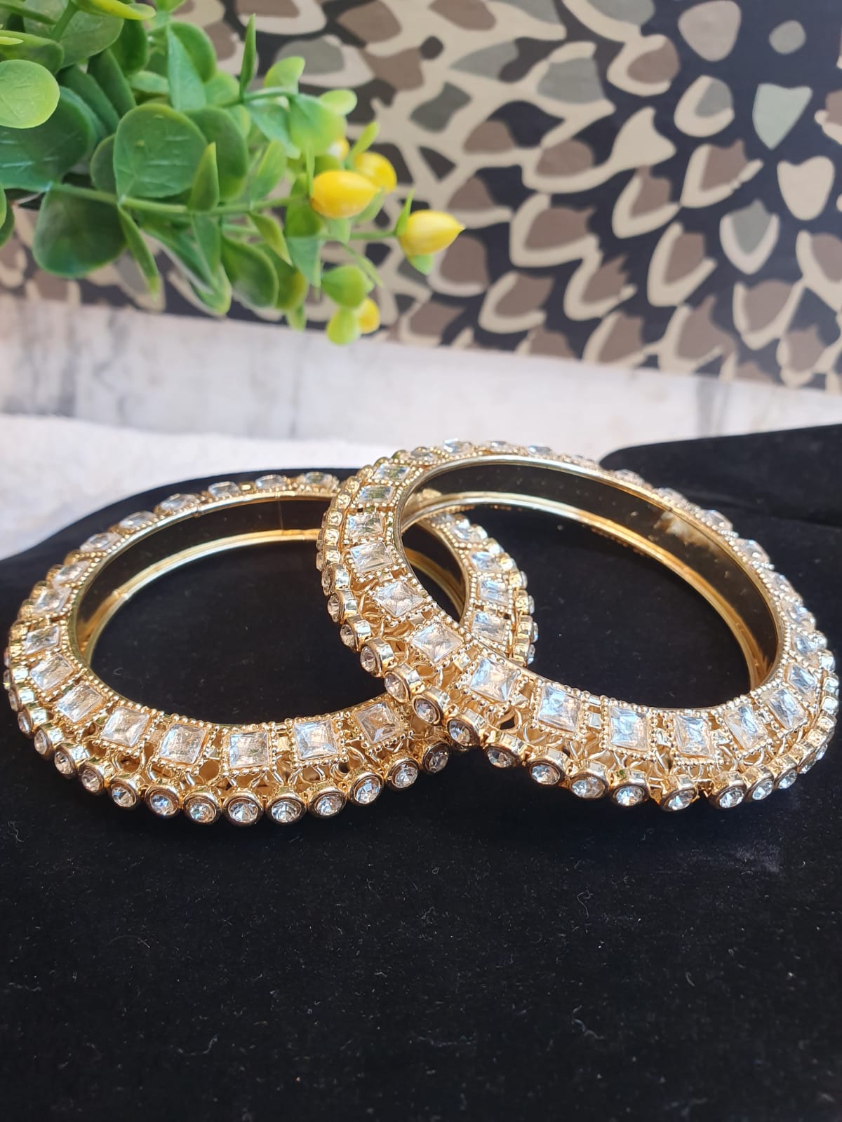 Details: Set of 2 Gold plated Kundan,beaded bangles.