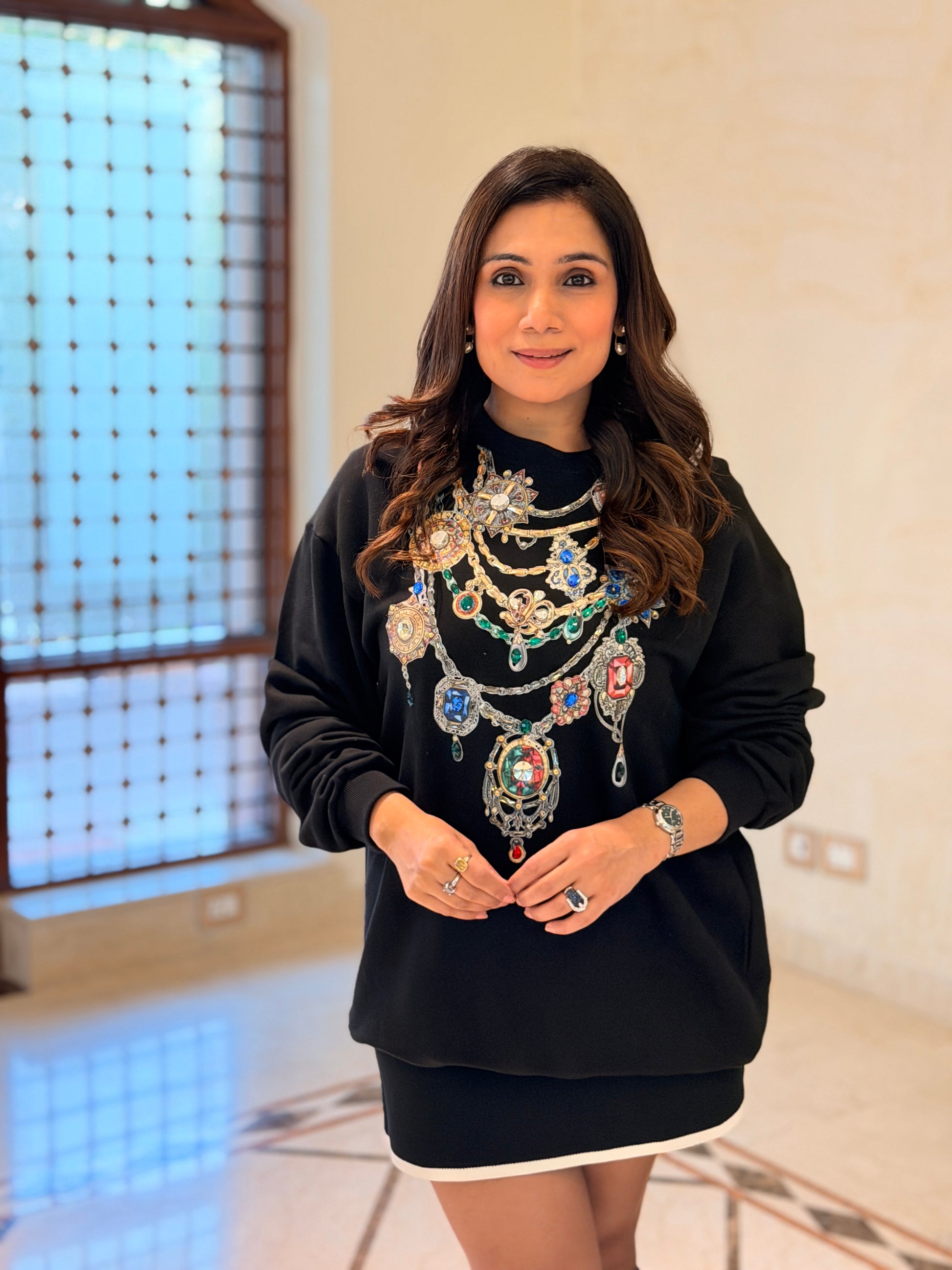 Sizing: The model is wearing size S-M. Connect with us on WhatsApp for personalized assistance!